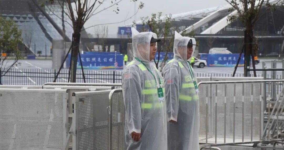我公司队员于9月18日提前驻守,用汗水与坚守筑牢安全屏障。冒雨把守关键路口,严格管控无关车辆进入,以专业姿态引导行人,用警惕目光扫视全场,脚步坚定,守护每寸安全。